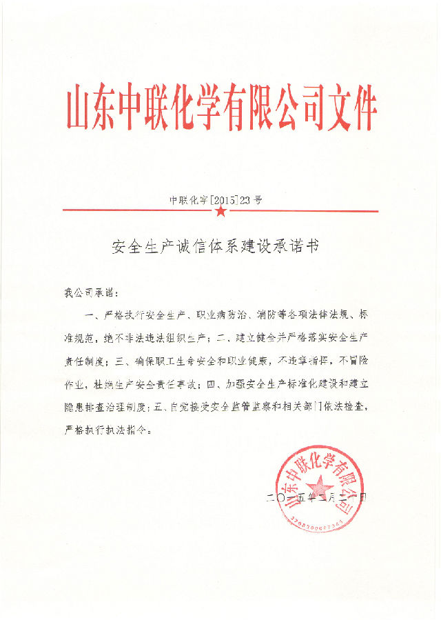 2015年2月20日《安全生产诚信体系建设承诺书》……